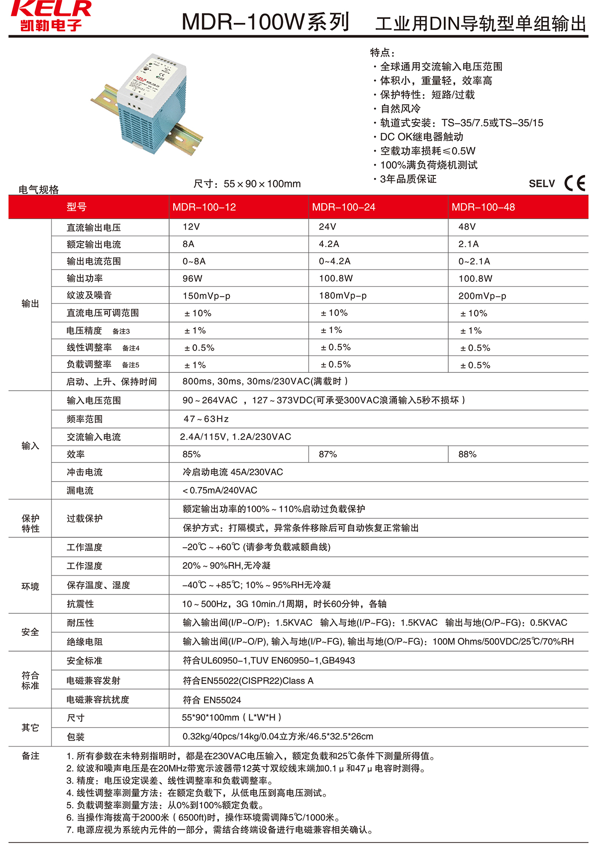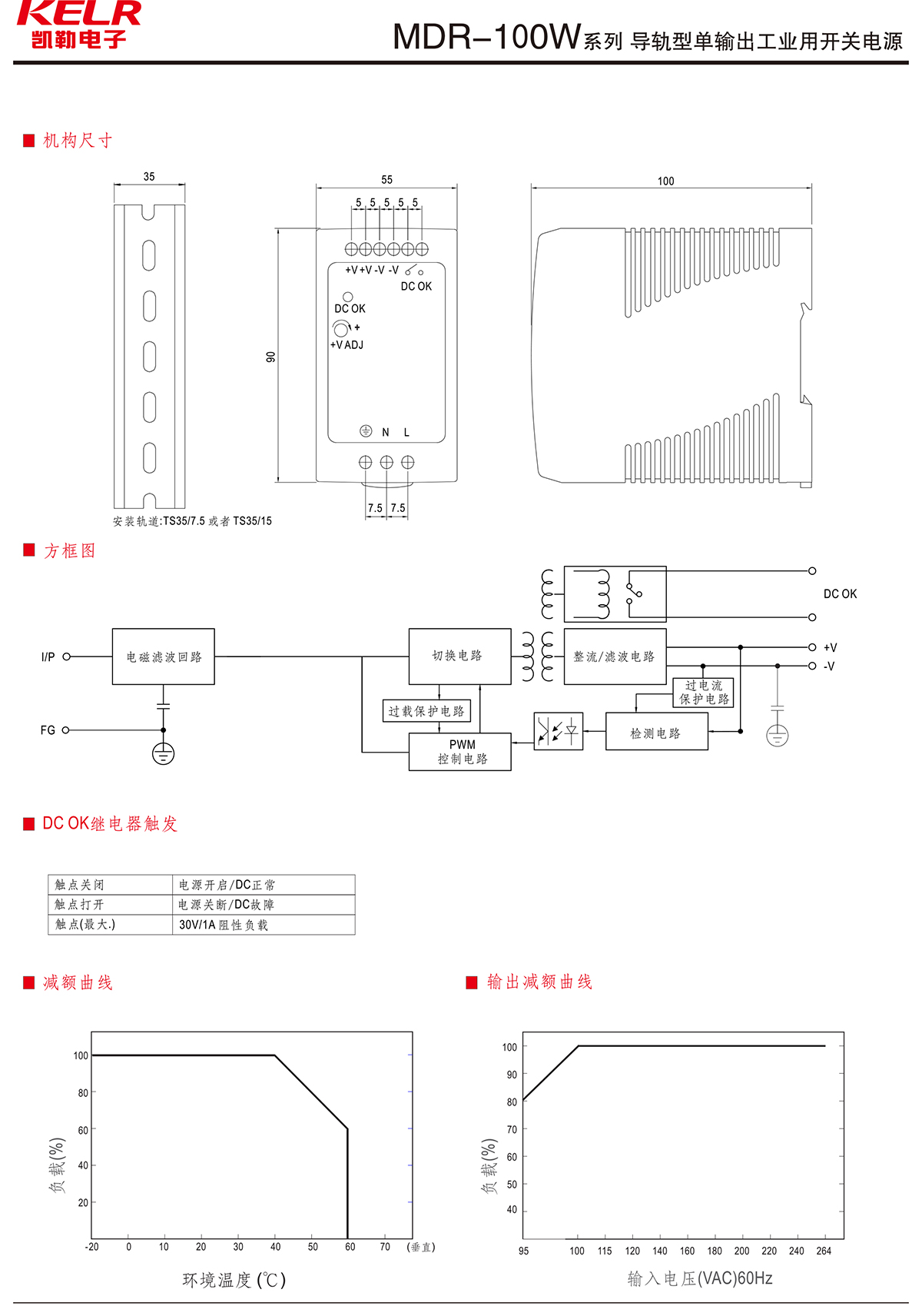 MDR-100W 系列 工業(yè)用DIN導(dǎo)軌型單組輸出